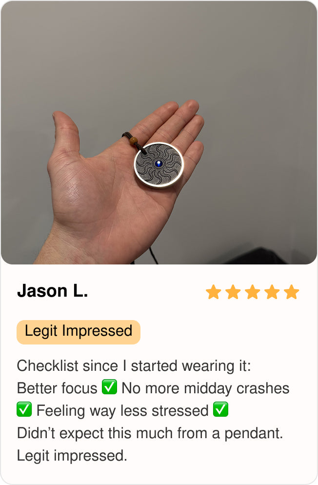 Many people today feel the effects of living in technology-heavy environments — such as fatigue, mental cloudiness, disrupted sleep, and overall stress. These experiences are often associated with busy lifestyles, constant notifications, and digital overload. The Harmony Pendant is designed to offer a dual-layered support system to help you feel more balanced and centered: